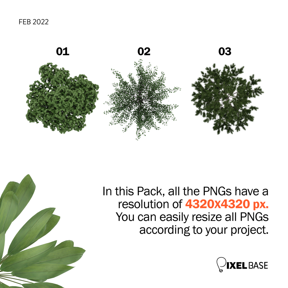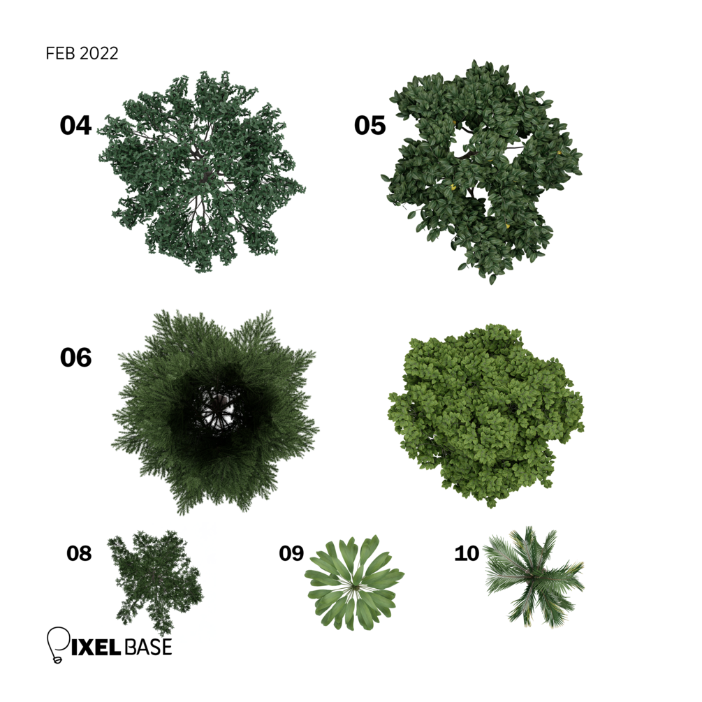 In this pack, you will get 10 High-Resolution PNG images that are ready to use in different settings! Each tree has a specified type that facilitates its use on a technical level.